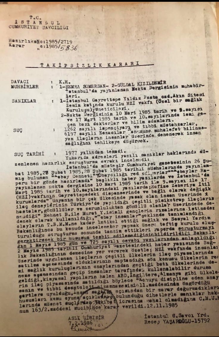 Sevgili okurlar belgelerle yapıldığı söylenen karalama kampanyasında söz konusu “belgeler” 40 yıl öncesinin tekzip edilmiş dergi ve gazete haberlerinden ibaret. Bu yalan haberlerin mimarı olan muhabirlerin suç duyurusuna verilen takipsizlik kararını, yapan derginin genel yayın yönetmeninin 2011 yılında yazdığı özür yazısını (belki ileride yeni özür yazıları da görürüz), TBMM’de bu konuyla ilgili soru önergesine verilen cevapları yukarıda ve aşağıda bulabilirsiniz. Hiçbir somut delil olmamasına rağmen köpürte köpürte büyük bir gazetecilik olayıymış, ortaya çok önemli bir şey çıkartılmış gibi bu yalana bir sürü insan da ortak edildi.